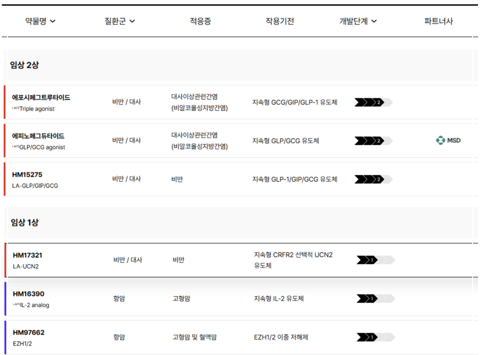 한미약품은 현재 MASH·비만·당뇨 등 글로벌 메가마켓을 겨냥한 2상·3상 파이프라인을 다수 보유하고 있어,