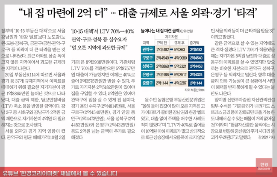 결국 “대출규제 집값 안정보다 계층 양극화 심화”라는 우려가 커지고 있습니다.